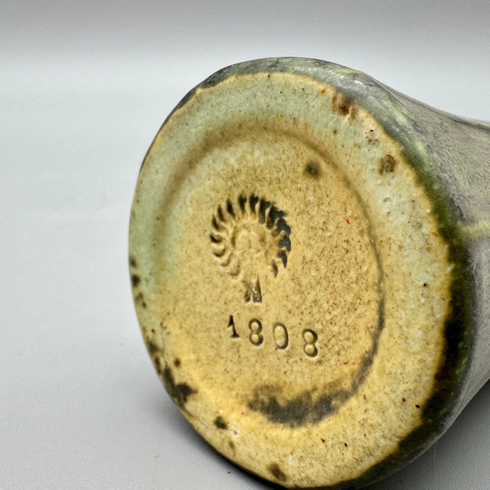 Home18081808DescriptionCabinet VaseDimensions3-1/2" hDate Made1911Year of Purchase2025Purchase Price (hammer or sale price, plus premium if applicable) $80 (allocated)Where PurchasedCaza SikesCommentsDesigned by John D. WarehamGallery