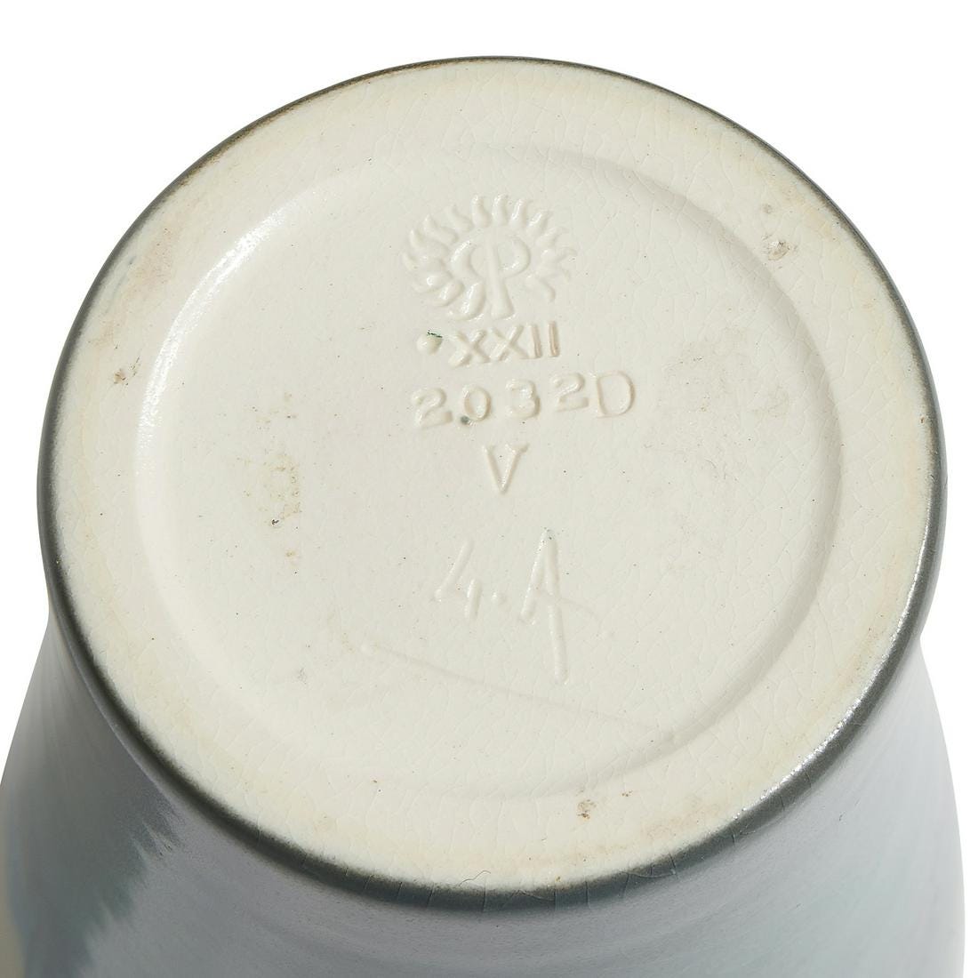 Home2032(3)2032(3)DescriptionVaseDimensions9 3/4" h x 4" diaDate Made1922Year of Purchase2021Purchase Price (hammer or sale price, plus premium if applicable) $1,000Where PurchasedToomey & Co.CommentsVellum glaze; cipher of Lenore AsburyGallery