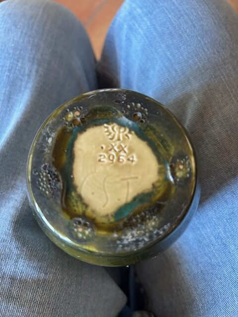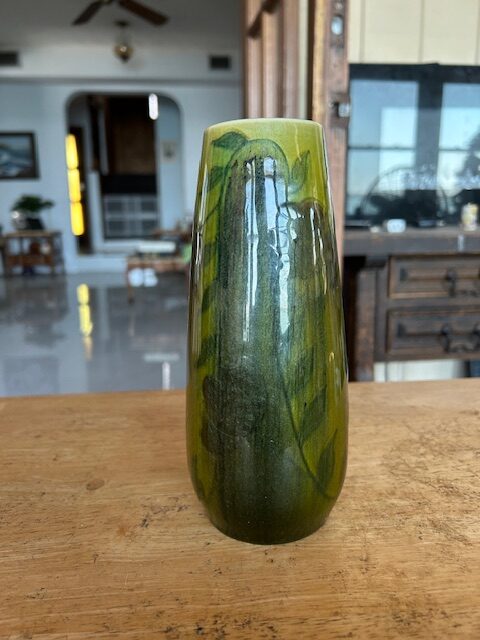 Home2064(9)2064(9)DescriptionVase, greenDimensions8" hDate Made1920Where PurchasedFamily heirloomCommentsFor Sale; cipher of Charles S. ToddGallery