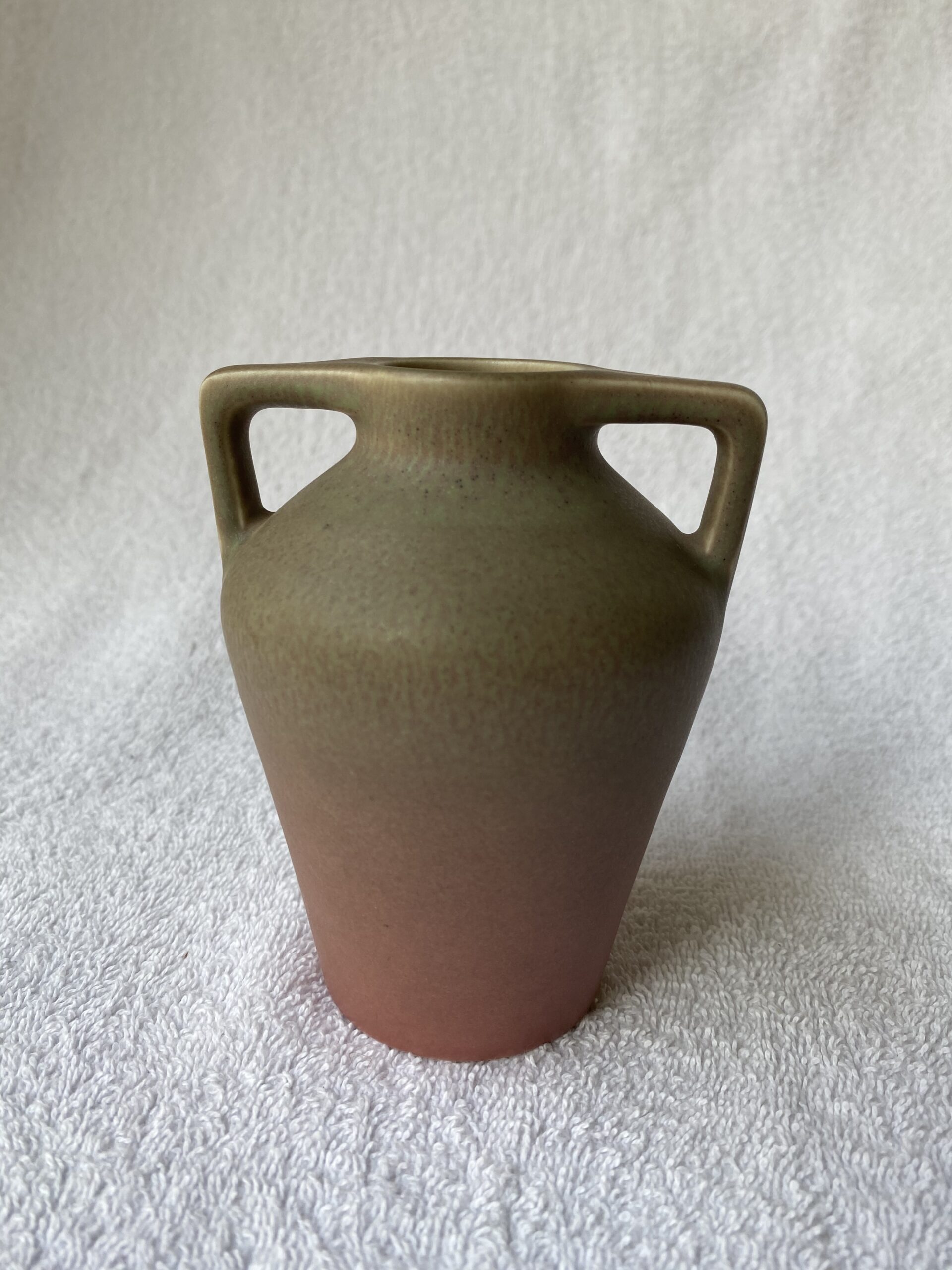 Home2561(2)2561(2)Description2-Handle VaseDimensions4 1/4" high x 3 1/2" diaDate Made1921Year of Purchase2021Purchase Price (hammer or sale price, plus premium if applicable) $64; resold on eBay in 2022 for $88Where Purchased1957 Estate Bargains AuctionGallery