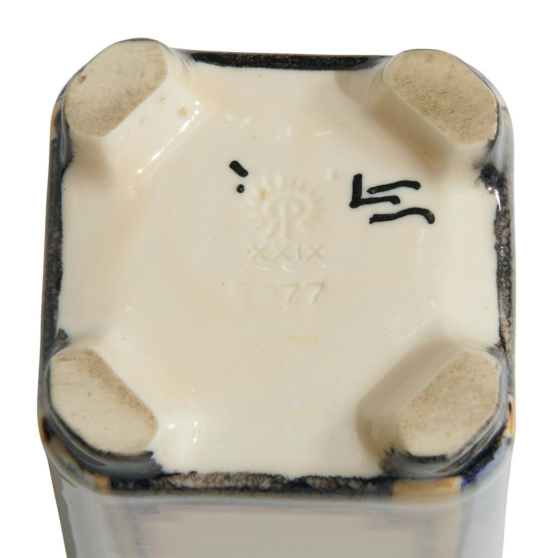 Home29772977DescriptionSquare VaseDimensions7-1/2" h x 3-3/4" sqDate Made1929Year of Purchase2021Purchase Price (hammer or sale price, plus premium if applicable) $1,500Where PurchasedToomey & Co.CommentsInked cipher of Lorinda EpplyGallery