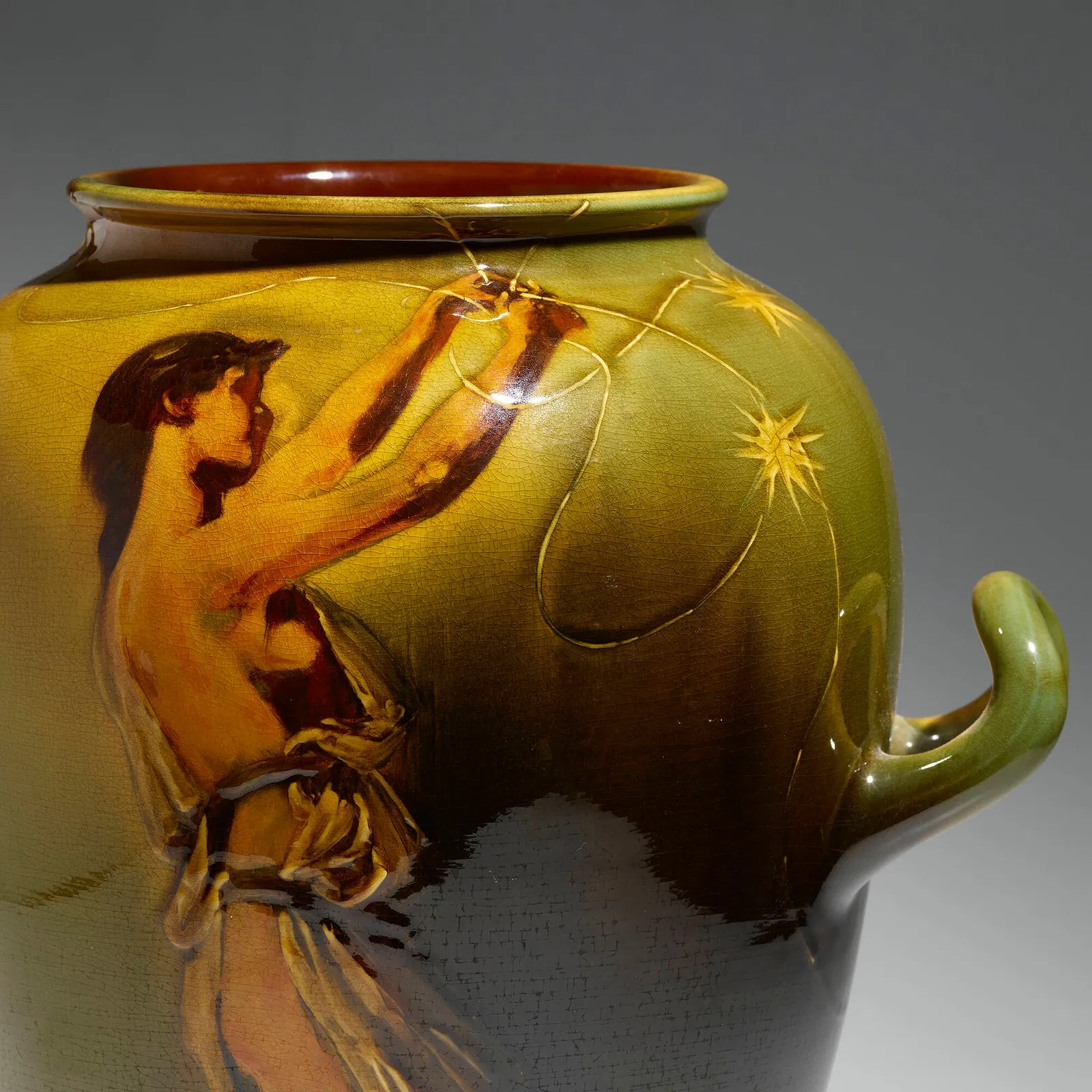 Standard glaze; cipher of Artus Van Briggle; provenance: Glover Collection, June 1991, Lot 837, $4,400