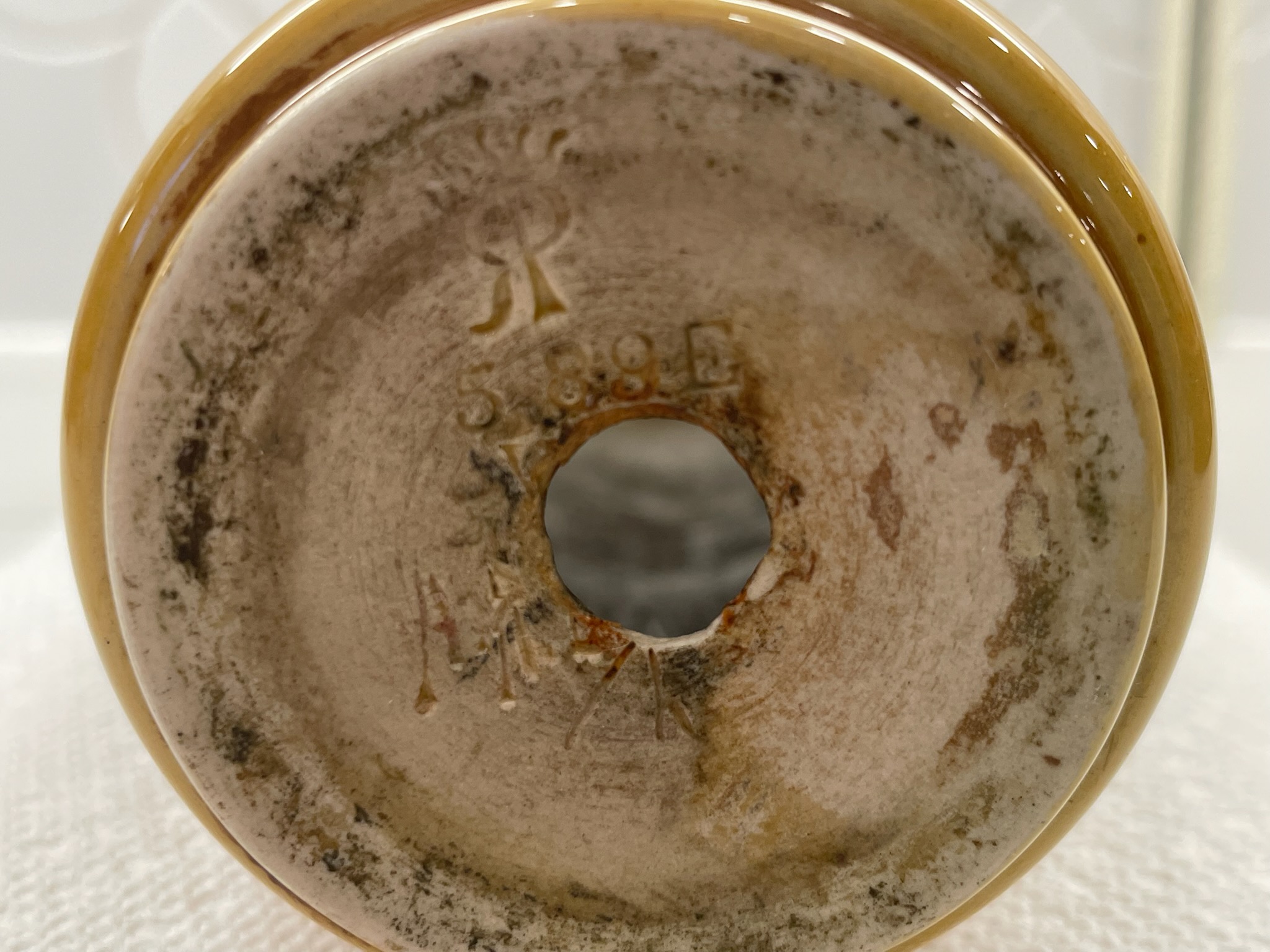 Home589(33)589(33)DescriptionVaseDimensions8" hDate Made1891Year of Purchase2026Purchase Price (hammer or sale price, plus premium if applicable) $234Where PurchasedOnline AuctionCommentsHole drilled in bottom; cipher appears to be that of Albert R. ValentienGallery