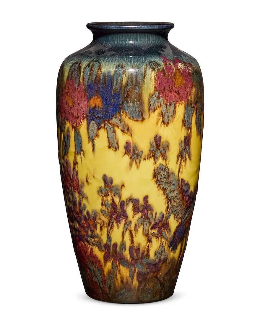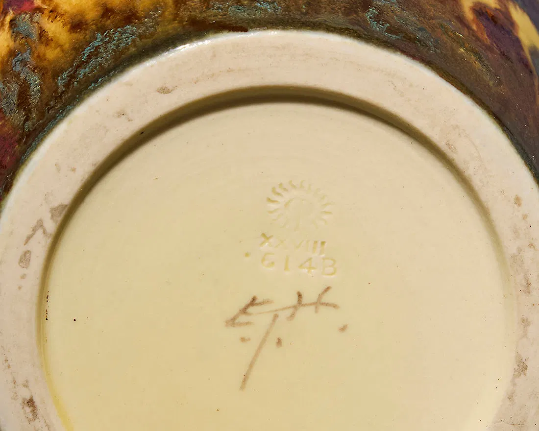 Home614(137)614(137)DescriptionTall VaseDimensions14-3/4" h x 7-5/8" diaDate Made1928Year of Purchase2026Purchase Price (hammer or sale price, plus premium if applicable) $6,033Where PurchasedJohn Moran AuctioneersCommentsInked cipher of Edward T. HurleyGallery