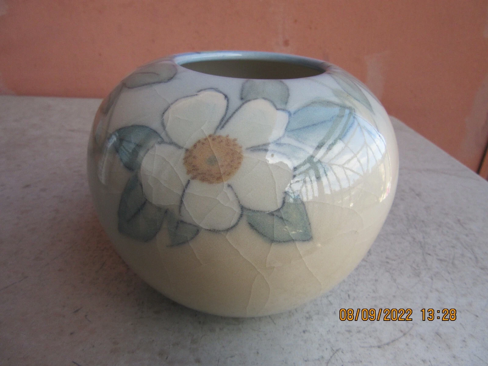 Home6199(14)6199(14)DescriptionCabinet VaseDimensions4" h x 4-3/4" diaDate Made1946Year of Purchase2025Purchase Price (hammer or sale price, plus premium if applicable) $399Where PurchasedeBayCommentsCipher of Kataro ShirayamadaniGallery