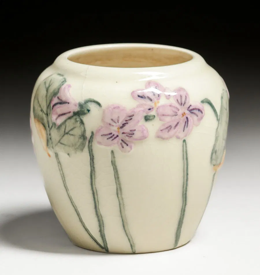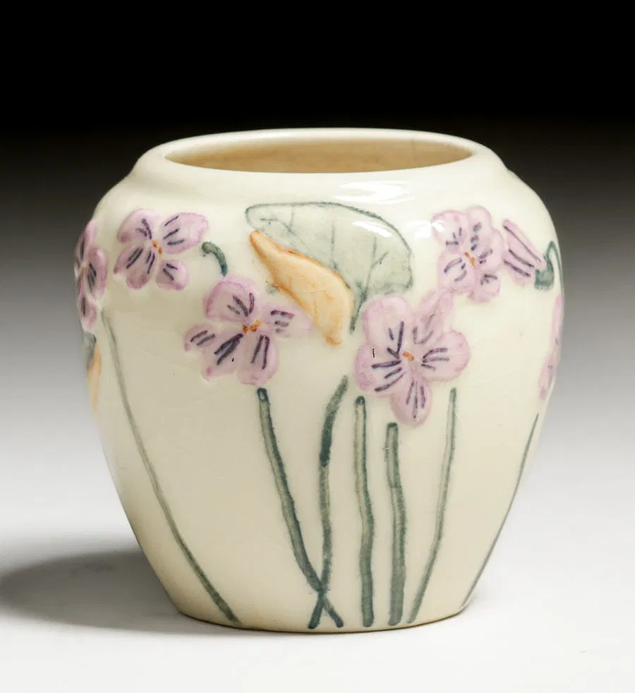 Home6432(12)6432(12)DescriptionCabinet VaseDimensions3-3/4" h x 3-3/4" diaDate Made1946Year of Purchase2025Purchase Price (hammer or sale price, plus premium if applicable) $95Where PurchasedCalifornia Historical DesignCommentsHairline; artist cipher not identifiedGallery