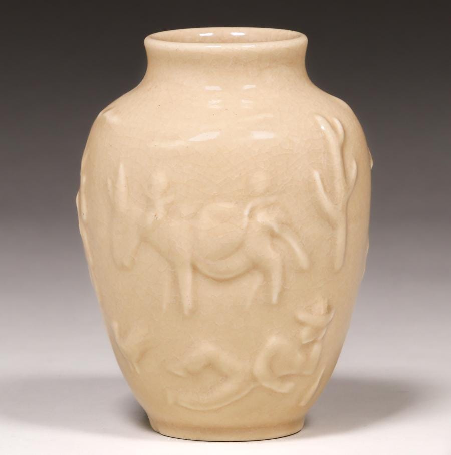 Home67626762DescriptionVaseDimensions5.75" h x 4"diaDate Made1944Year of Purchase2021Purchase Price (hammer or sale price, plus premium if applicable) $94Where PurchasedCalifornia Historical DesignGallery