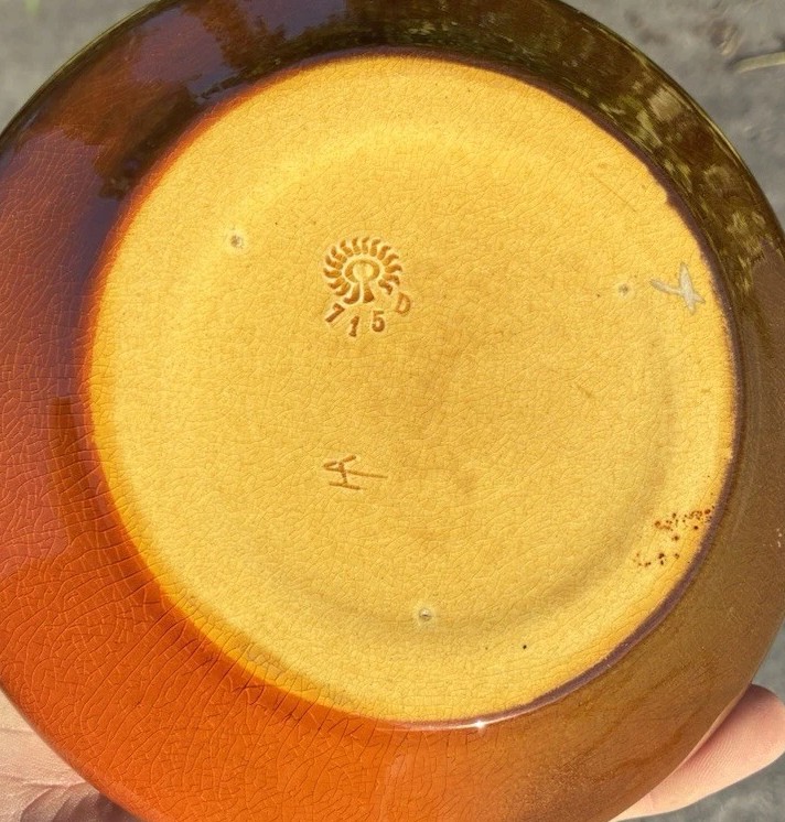 Home715(10)715(10)DescriptionVaseDimensions7-1/2" hDate Made1900Year of Purchase2026Purchase Price (hammer or sale price, plus premium if applicable) $182Where PurchasedeBayCommentsStandard glaze; cipher of Howard AltmanGallery