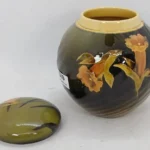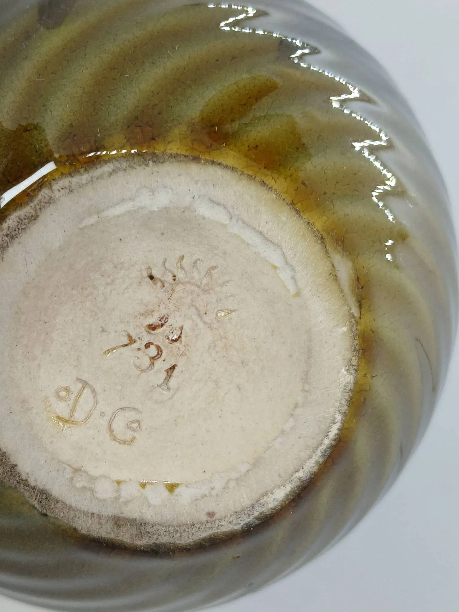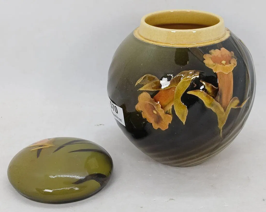 Home731(4)731(4)DescriptionVessel with LidDimensions4" hDate Made1894Year of Purchase2026Purchase Price (hammer or sale price, plus premium if applicable) $132Where PurchasedBrown AuctionCommentsStandard glaze; cipher of Daniel CookGallery