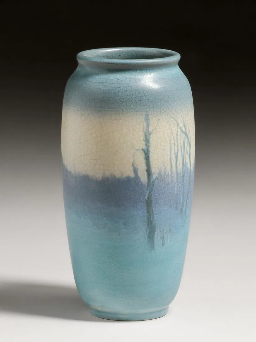 Home892(30)892(30)DescriptionVaseDimensions9-1/4" h x 4" diaDate Made1911Year of Purchase2025Purchase Price (hammer or sale price, plus premium if applicable) $635Where PurchasedCalifornia Historical DesignCommentsVellum glaze; cipher of Frederick RothenbuschGallery