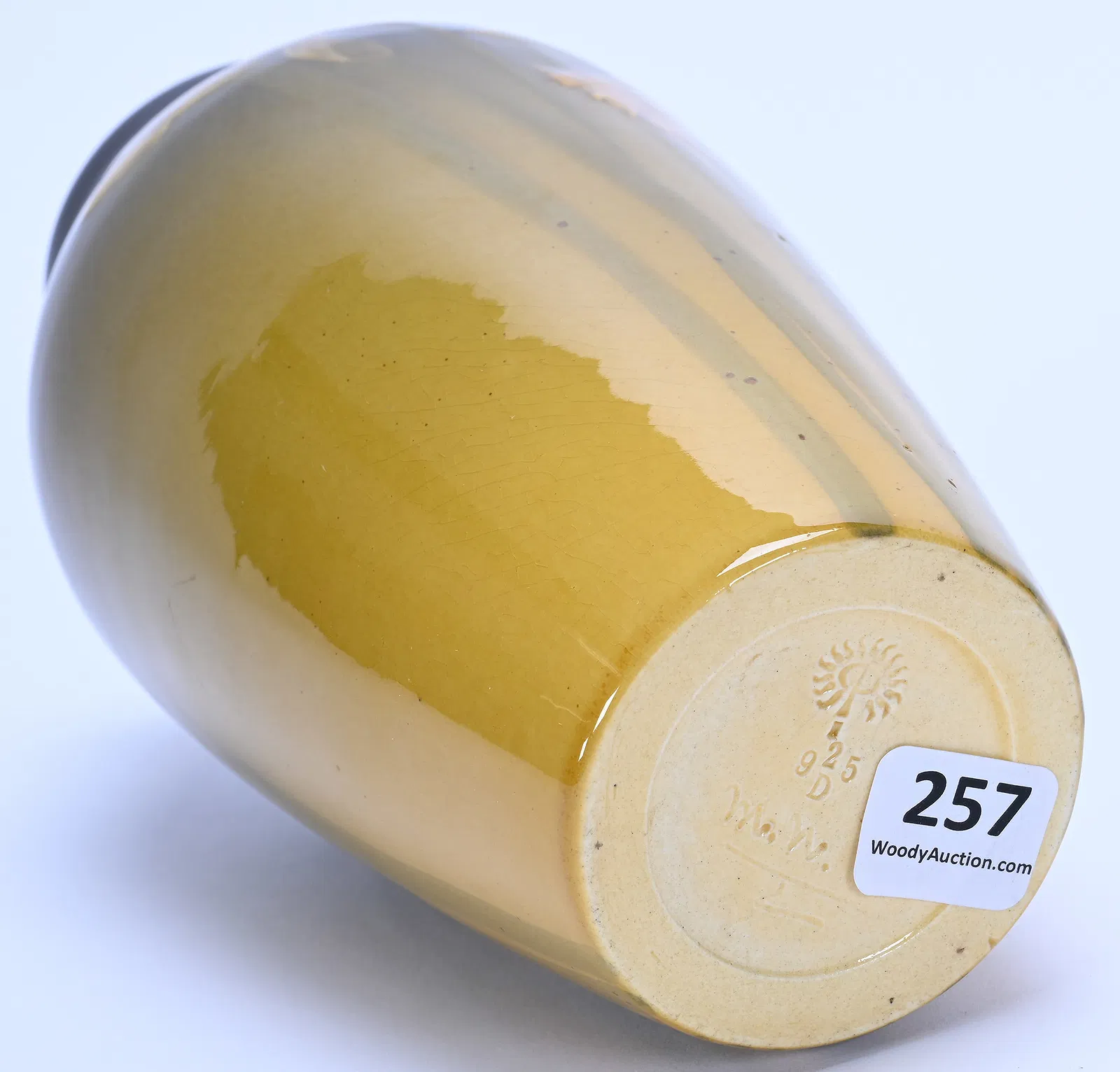 Home925(66)925(66)DescriptionVaseDimensions7-3/4" h x 4" diaDate Made1901Year of Purchase2026Purchase Price (hammer or sale price, plus premium if applicable) $690Where PurchasedWoody AuctionCommentsStandard glaze; cipher of Mary NourseGallery
